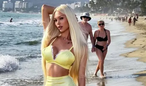 Във фотосите инфлуенсърката позира в много изрязан бански, който подчертава формите ѝ. Силно секси визията ѝ оставя малко пространство за въображение и събра хиляди харесвания за минути.