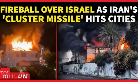 Бомбени остатъци и пожари след попадение на иранска касетъчна бойна глава