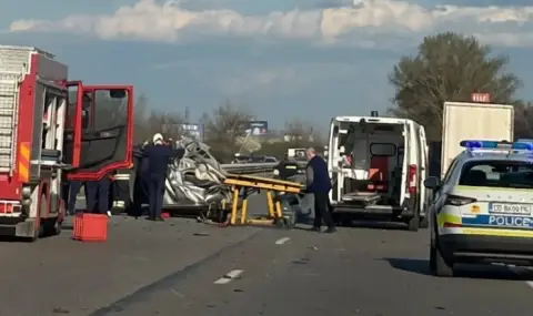 На мястото веднага бяха изпратени полицейски патрули, пожарникари и линейка. Спасителните и огнеборните служби работят за обезопасяване на участъка и оказване на първа помощ, като към момента няма официална информация за броя и състоянието на пътуващите в пострадалия автомобил.