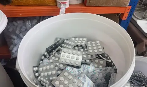 - Иззети са повече от 1 000 000 таблетки, суровини и машини за производство.